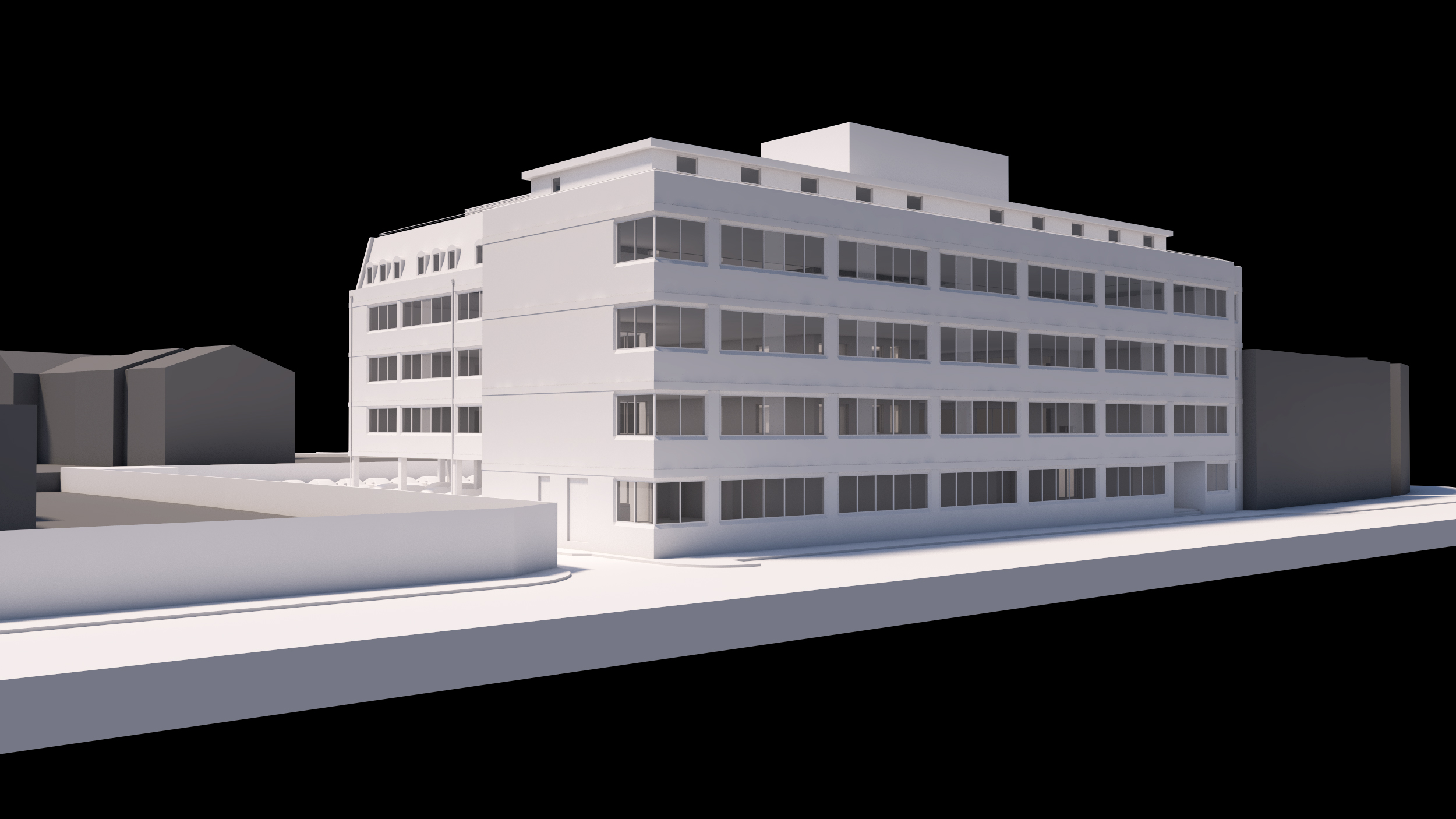 Refurbishment of existing four storey office block to form a new 167 bed Premier Inn Hotel with ground floor restaurant and bar. Works to include 2No. four storey side extensions, mansard roof extension, fifth floor glazed extension and roof top terraces offering spectacular views over London and Wembley stadium.