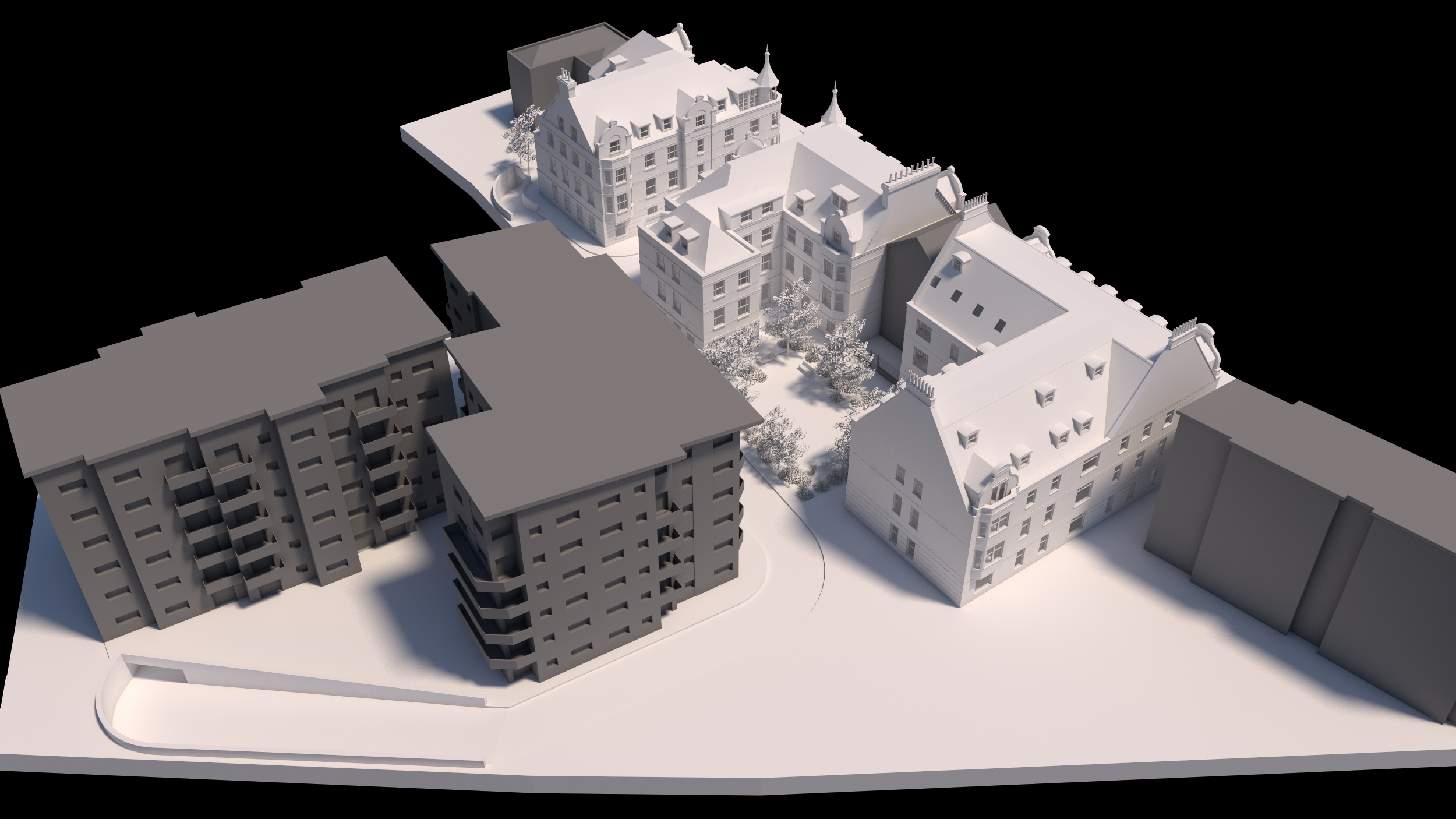 This was a new build residential scheme involving the demolition of all existing buildings and constructing 3No. new period styled residential buildings consisting of 43No. two bedroom apartments, 8No. two bedroom duplex apartments and 1No. retail space at ground floor level.